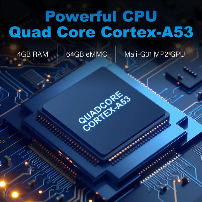 "💡 Unmatched Performance: With a Quad-Core Cortex-A53 CPU, 4GB RAM, and 32GB storage, this device ensures smooth multitasking and reliable performance for apps, games, and streaming."